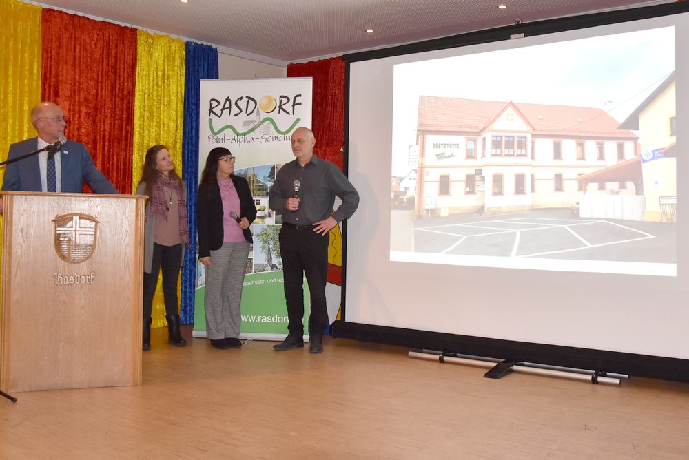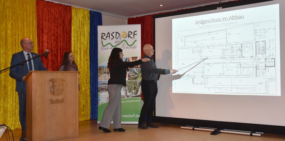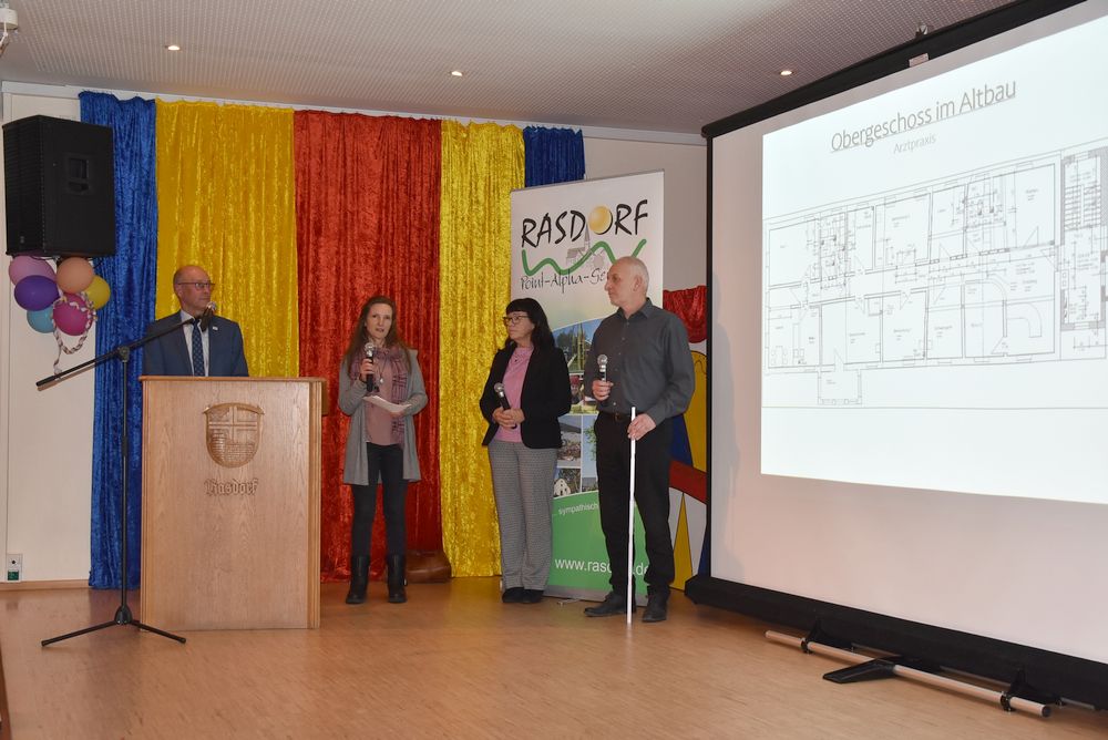 Das Großprojekt „Gemeinsam Wohnen in Rasdorf“ sowie „Frauenärztin in Rasdorf“ stellten René Winkler, Architektenbüro Winkler Kassel in Zusammenarbeit mit Architektenbüro Erich Ebert Hünfeld, sowie Birgit Klomann-Renkert, Geschäftsführerin Harmonie Care und Franziska Gerstung, Fachärztin für Frauenheilkunde und Geburtshilfe anhand von Schautafeln vor.