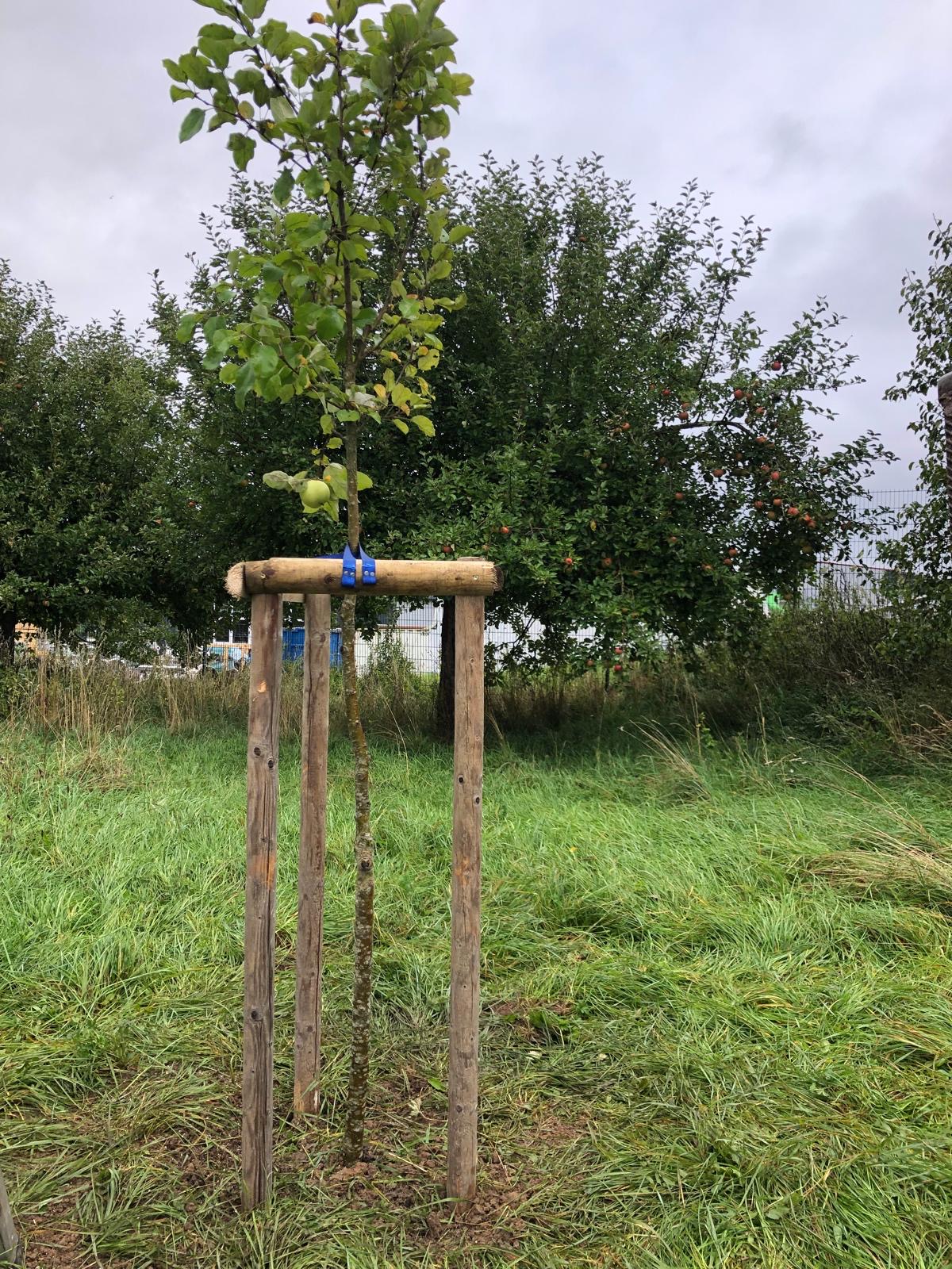 Bürgermeister Jürgen Hahn hat gemeinsam mit unserem Bauhof-Team in der gemeindlichen Streuobstwiese in der Vockenbach in Rasdorf einen Apfelbaum gepflanzt.