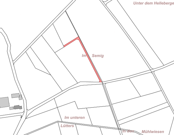 Der im Rezess von Rasdorf vom 12. und 13.08.1912 entstandene Wirtschaftsweg in der Gemarkung Rasdorf, Flur 10, Flurstück 89 „Im Semig“ mit einer Größe von 537 m² wird eingezogen. Diese Wegefläche, deren Lage im beigefügten Plan, welcher Bestandteil der Satzung wird, zu entnehmen ist (rot hinterlegt), verliert damit seine festgelegte Zweckbestimmung als Wirtschaftsweg.