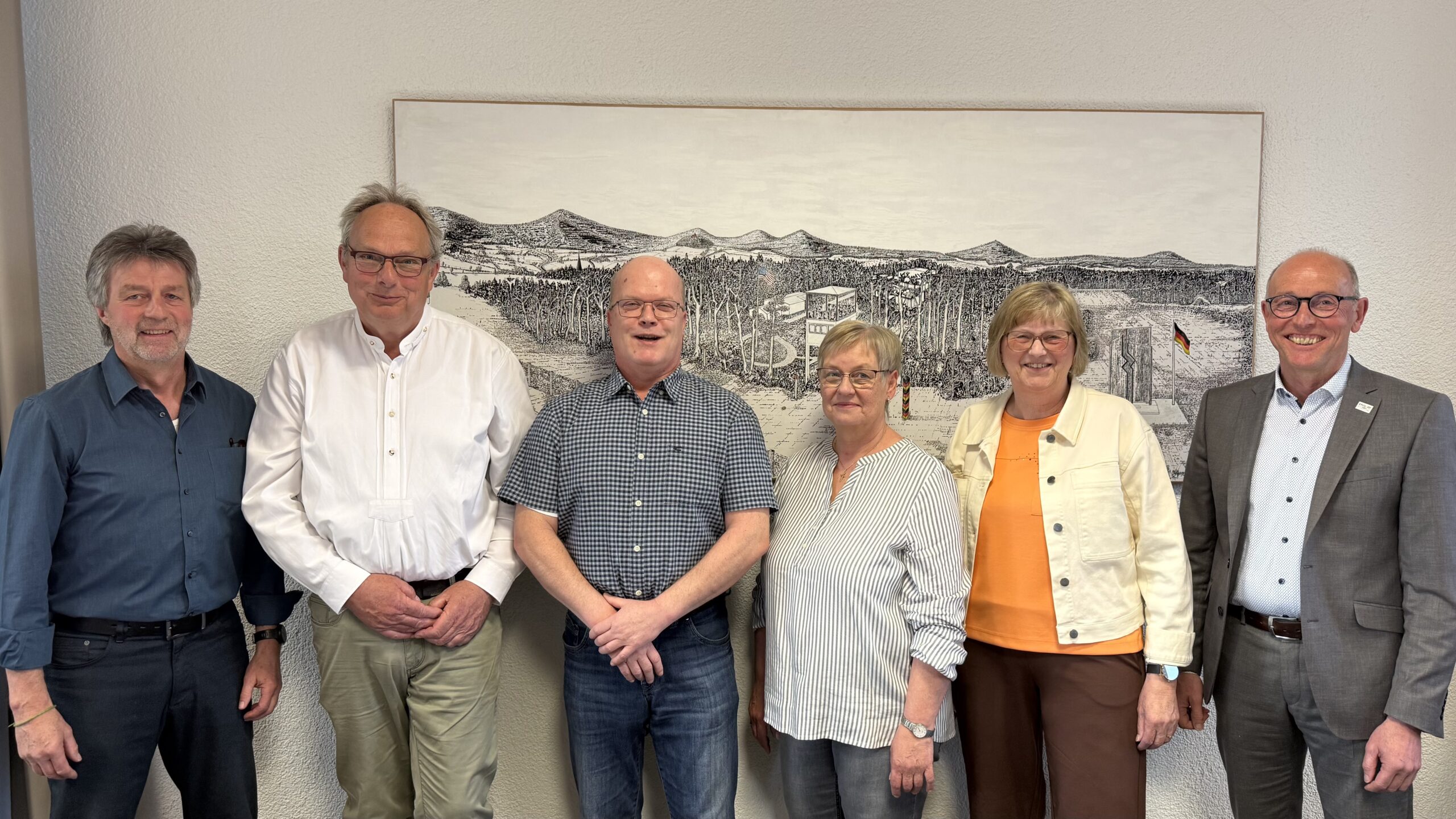 v.l.n.r. Klaus-Peter Sauerbier (Vorsitzender der Gemeindevertretung), Christoph Pralle (Erster Beigeordneter), Frank Fischer (Beigeordneter), Carolin Klee (Beigeordnete), Annette Kümpel (Beigeordnete) und Jürgen Hahn (Bürgermeister)